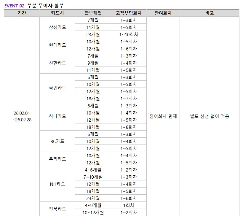 [공지] 2026년 2월 카드사 무이자 혜택 안내